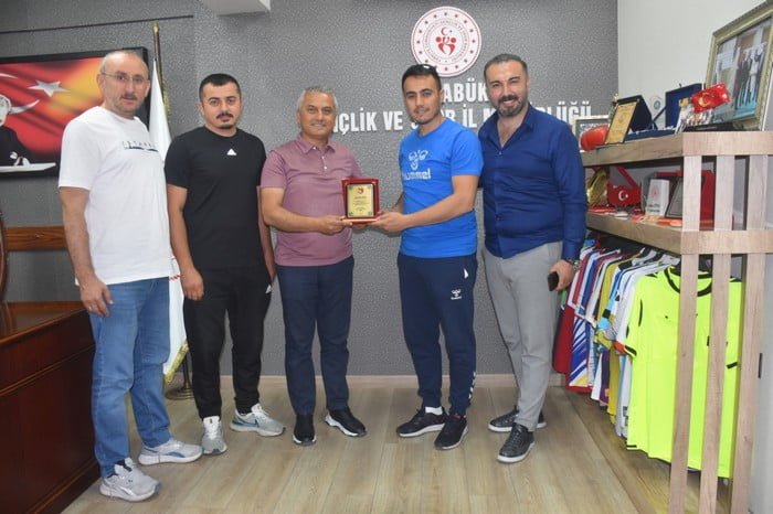 Ziyaretleri kapsamında Başkan Serdar Aydın İl Müdürü Coşkun Güven’e , 8. Altın Safran Kurumlar Arası Futbol Turnuvasında verdiği desteklerden dolayı teşekkür ederek pilaket hediye etti.