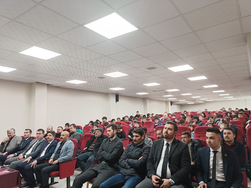 Safranbolu Şehit Ömer Bilal Akpınar Anadolu İmam Hatip Lisesi’nde düzenlenen “Uyuşturucu Ve Ekran Bağımlılığına Karşı Mücadele” konulu konferansa konuşmacı olarak Karabük İl Emniyet Müdürlüğü Narkotik Şube Müdürü Ömer Dinç, Siber Suçlarla Şube Müdürü Mehmet Doğan ve Psikolojik Danışman Aybüke Gürbüz katıldı.