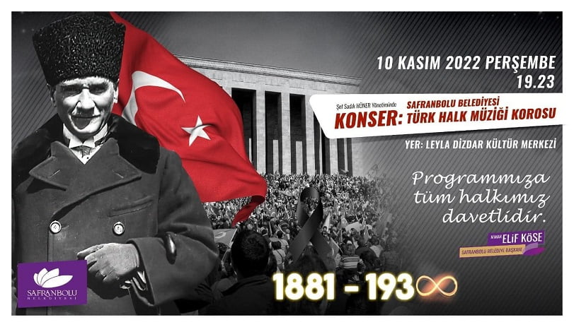 Konuyla ilgili Safranbolu Belediyesi’nden yapılan açıklamada, “O’nu kaybedişimizin 84. yılında, Safranbolu Belediyesi olarak anma konseri düzenleyeceğiz. Belediyemizin Türk Halk Müziği Korosu’nun, 10 Kasım saat 19.23’te seslendireceği türkülerle atamızı anmak için sizleri Leyla Dizdar Kültür Merkezimize bekliyoruz.” denildi.