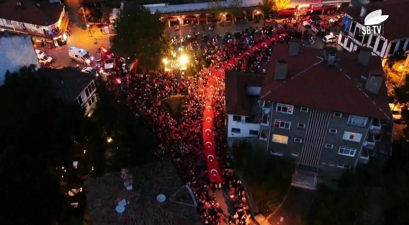 Safranbolu Protokolü, siyasi parti temsilcileri, atlı birlikler, emniyet güçleri, askerler, öğrenciler, öğretmenler, bando takımı, özel kuruluşlar, 7’den 70’e kadın erkek binlerce vatandaş ellerinde meşaleler, Türk Bayrakları, Atatürk resimli tişörtleri ile Köyiçi mevkiinden Misak-ı Milli Demokrasi meydanına kadar gururla yürüdü.