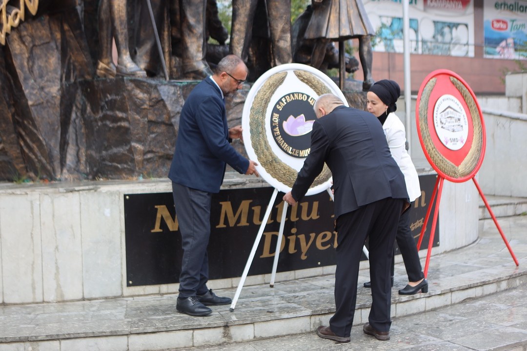 Misak-ı Milli Demokrasi Meydanında Gerçekleştirilen törende, Safranbolu Köy ve Mahalle Muhtarlar Derneği tarafından Atatürk Anıtı’na çelenk sunuldu. Ardından saygı duruşunda bulunularak İstiklal Marşı okundu.