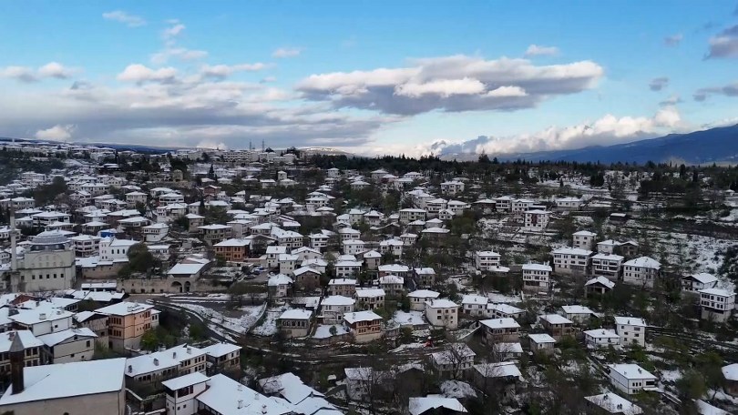 İlçede kar yağışı sonrası güneşin yüzünü göstermesiyle birlikte her biri geçmişin sessiz tanığı olan tarihi evlerin üzerindeki kar tabakası parıldarken, kuş sesleriyle birlikte ortaya insanı mest eden görüntüler çıktı.