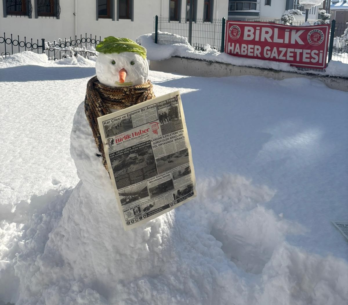 Safranbolu’da etkili olan kar yağışını fırsata çeviren Safranbolu Birlik Haber Gazetesi ekibi, klasik kardan adam anlayışının dışına çıkarak dikkat çeken bir çalışmaya imza attı. “Kardan adam yapsak nasıl olur?” düşüncesiyle başlayan fikir, kısa sürede yaratıcı ve mizahi bir çalışmaya dönüştü.