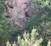 Bir süre dik kayalıklara tırmanan ayı, daha sonra ormanlık alana yönelerek gözden kayboldu.