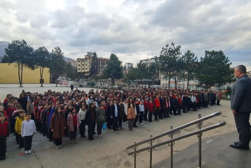 Milli Eğitim Bakanlığının aldığı karara doğrultusunda ilçedeki okullarda 6 Şubat depremlerinde hayatını kaybedenler için bir dakikalık saygı duruşunda bulunuldu.