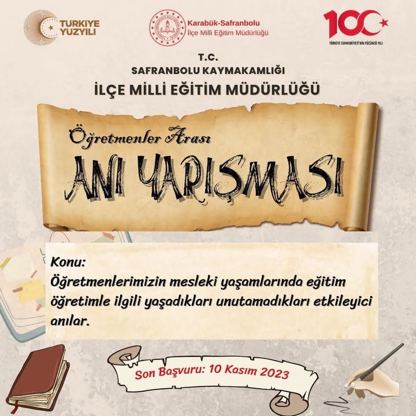 Safranbolu İlçe Milli Eğitim Müdürlüğü tarafından düzenlenen anı yarışmasıyla ilgili yapılan açıklamada ise, “Cumhuriyetimizin 100. Yılı ve Türkiye Yüzyılı vizyonuyla devam eden etkinlilerimiz kapsamında 24 Kasım Öğretmenler Günü münasebetiyle ilçemizdeki tüm öğretmenlerimiz arasında, öğretmenlerimizin mesleki yaşamlarında eğitim-öğretimle ilgili yaşadıkları unutamadıkları etkileyici anıları anlattıkları bir anı yarışması düzenlenmektedir. Yarışma için son başvuru tarihi 10 Kasım Cuma günüdür. Anı yarışmamıza ilçemizdeki tüm öğretmenlerimiz davetlidir. Ödül töreni 24 Kasım Öğretmenler Gününde Leyla Dizdar Kültür Merkezinde gerçekleştirilecektir.” denildi.