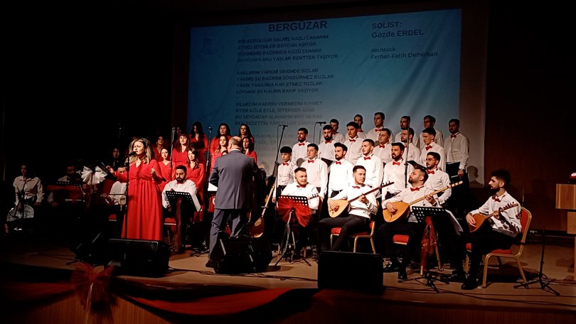 Türk Halk Müziği’nin sevilen eserlerinden oluşan repertuarıyla sahneye çıkan koro, dinleyicilere eşsiz bir müzik ziyafeti sundu. Konserde, horondan halaya kadar birçok yöreye ait türkü seslendirildi. Karadeniz’den Doğu Anadolu’ya, Kırşehir’den Uşak’a, Erzincan’dan Rize’ye ve Diyarbakır’a kadar geniş bir coğrafyayı kapsayan eserler, dinleyiciler tarafından alkışlarla eşlik edildi. Öğrencilerin solo performansları ise büyük takdir topladı.