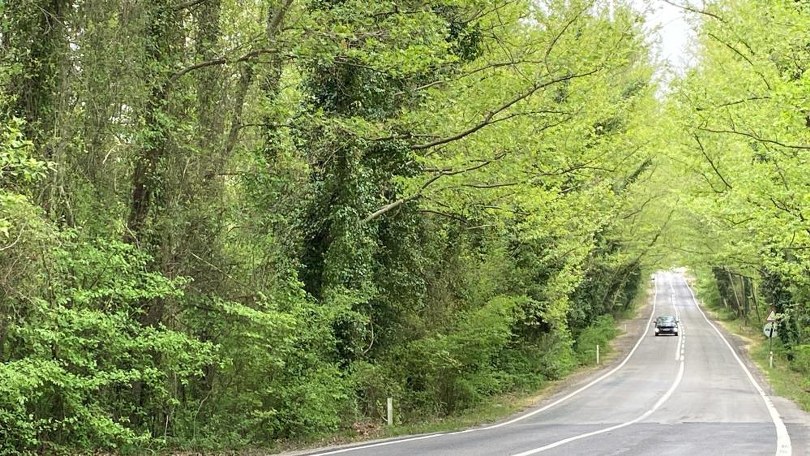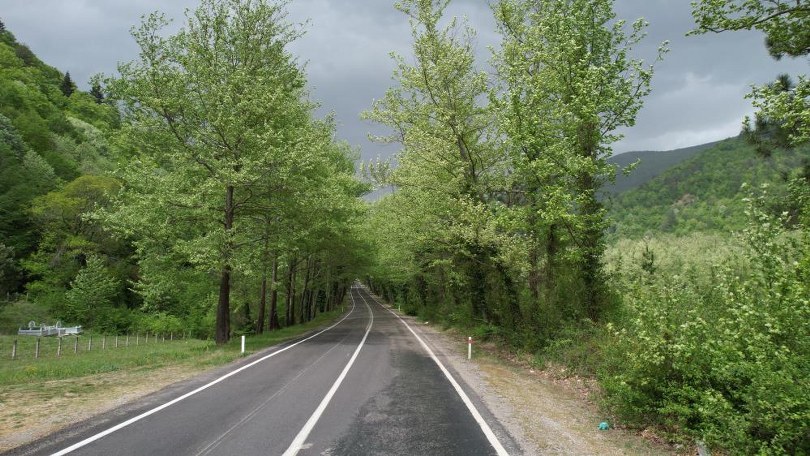 İlkbaharın gelişi, doğanın da canlanmasıyla birlikte yeşilin her rengine sahip olan yol dron ile görüntülendi.