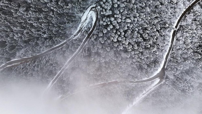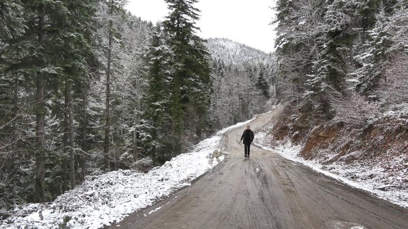 Kar yağışının ardından Safranbolu-Bartın kara yolu Ahmetusta ve Sarıçiçek mevkiinde ormanlar beyaz örtüyle kaplandı.