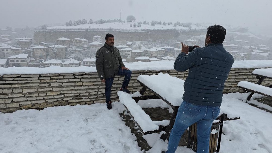 Osmanlı mimarisi, şehir hayatı ve kültürünü yansıtması dolayısıyla “Osmanlı’nın parmak izi” olarak adlandırılan ilçede bulunan han, hamam, cami, çeşme ve konak gibi tarihi yapılar karla birlikte beyaza büründü.