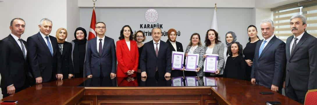 Karabük İl Millî Eğitim Müdürümüz Nevzat Akbaş, Safranbolu İlçe Millî Eğitim Müdürü Şevket Küçükzoroğlu, katılımıyla, eTwinning sertifikası almaya hak kazanan okullarımızın idareci ve öğretmenleriyle bir araya gelindi.