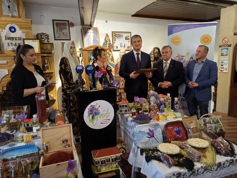 Safranbolu Esnaf ve Sanatkârlar Odası tarafından 2009 yılında coğrafi işaret tescil belgesi alınan ve 10 Ağustos 2022’de AB komisyonuna başvurusu yapılan Safranbolu safranı AB’de coğrafi işaret tescili alan ilk Türk baharatı oldu. 17 Ocak’ta Resmi Gazete’de yayınlanan söz konusu tescil ile ilgili Safranbolu Esnaf ve Sanatkârlar Odası tarafından tarihi çarşı İmren Lokum Konaklarında basın toplantısı düzenlendi. Düzenlenen toplantıya Karabük Valisi Mustafa Yavuz, AK Parti Karabük Milletvekilleri Cem Şahin, Ali Keskinkılıç, Safranbolu Belediye Başkanı Elif Köse, Safranbolu Esnaf ve Sanatkârlar Odası Başkanı Muammer Dumaner, Özener Patent Yönetim Kurulu Başkanı Huriye Özener, Safranbolu Kültür ve Turizm Vakfı Başkanı Şefik Dizdar, kurum müdürleri, safran üreticileri, dernek, oda, STK başkanları ve vatandaşlar katıldı.