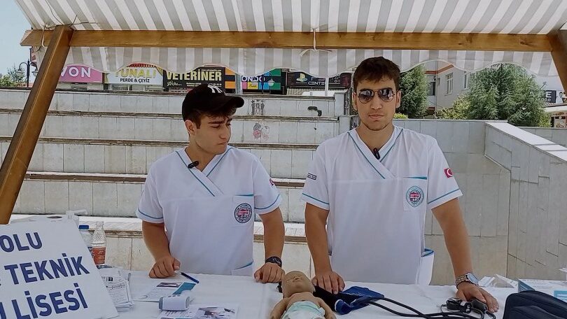 Sağlık öğrencileri katılımcılar tarafından yoğun ilgi gören Safranbolu Misak-ı Milli Demokrasi Meydanı’nda gerçekleşen Mesleki Eğitim Fuarı’nda stantlarına gelen katılımcıların, tansiyon ölçme, ateş bakma, kandaki oksijen ölçme gibi birçok faaliyette bulunarak hem öğrettiler hem de katılımcılara yardımcı oldular. Kendi bölümleri hakkında bilgiler vererek katılımcıların bilgilendirdiler.