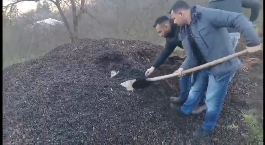 Bir diğer operasyon ise Cumayeri Üvezbeli köyünde yapıldı. İl Jandarma Komutanlığı KOM ve İstihbarat Şube Müdürlüklerinin istihbari çalışmaları neticesinde M.E. isimli şüphelinin evinde sahte alkol imal edip, sattığı tespit edildi. Dün saat 12.00 sıralarında ikamette yapılan aramada ise şüphelinin alkol bidonlarını sakladığı yer hayrete düşürdü. Ekipler tarafından yapılan incelemede, etil alkol bidonlarının ve bazı dolu içkilerin gübre içine saklandığı belirlendi. Gübreyi kürekle kazıyan ekipler şişe ve bidonları çıkardı. Evin odunluğun da boş içki şişeleri bulundu.