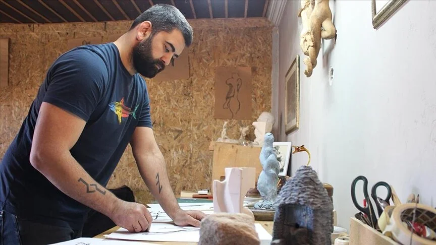 Atölyesinde 5 yıldır heykel üreten Orhan Gazi Keskin, AA muhabirine, zor bir malzeme olan mermerin kendisi için zamanla tutkuya dönüştüğünü, heykel sanatının zaman, mekan ve sınırının bulunmadığını söyledi.