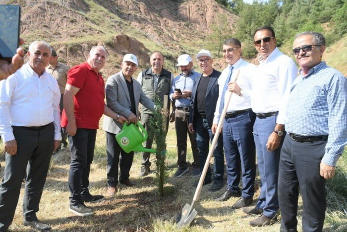 Protokol konuşmalarının ardından 275 fıstık çamı ve Ihlamurlardan oluşan fidanlar Vali Fuat Gürel ve protokol üyeleri tarafından toprakla buluşturularak can suyu verildi.
