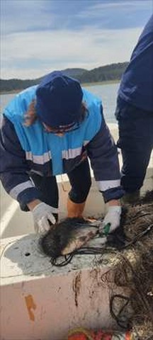 Kontrollerde tespit edilen 500 metre uzunluğunda hayalet ağ sudan çıkarıldı.