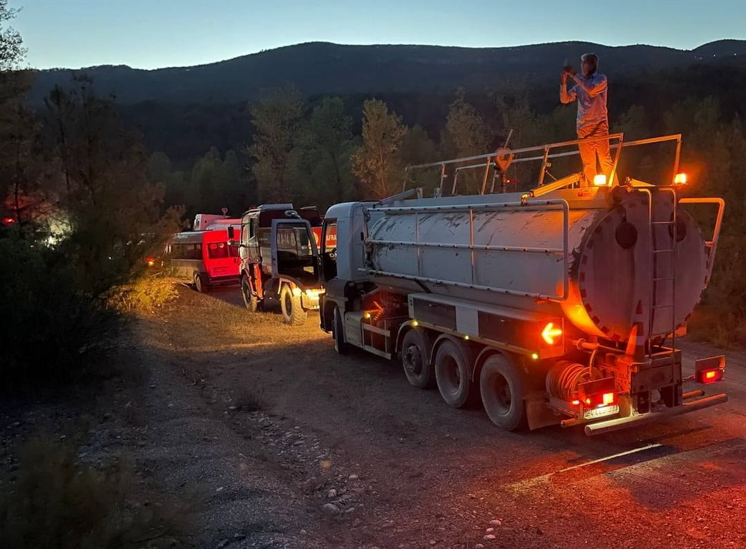 Ekipler, havanın kararmasıyla müdahalelere karadan devam ediyor.