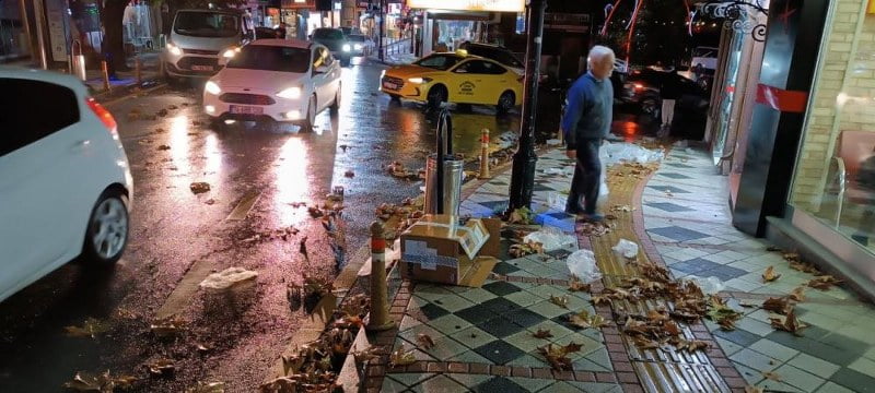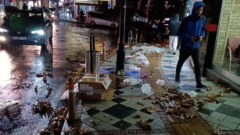 Bartın’da akşam saatlerinde başlayan sağanak yağış ile birlikte rüzgar etkili oldu. Kısa bir süre devam eden rüzgar, şehir merkezindeki Kemerköprü mevkisinde çöp kutularındaki poşet ve yaprakları uçurarak, etrafa savurdu. Araçların geçtiği yol ve yayaların yürüdüğü kaldırımlar adeta çöplüğe dönüştü.