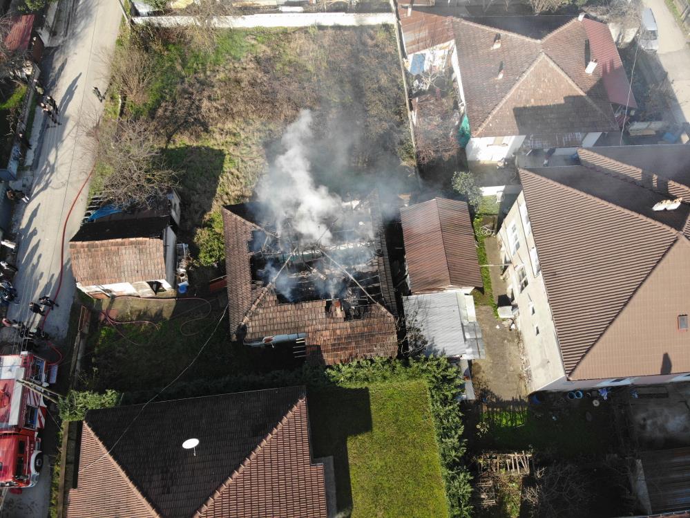 Yangın, Azmimilli Mahallesi Pınar Sokak üzerinde meydana geldi. Alınan bilgilere göre, Münevver G.’ye ait evde sobadan yangın çıktı. Yangının çıktığını fark eden Münevver G., komşularının yardımı ile evden çıkarılırken bölgeye Düzce Belediyesi İtfaiye Müdürlüğü ekipleri sevk edildi. Kısa sürede olay yerine gelen ekipler, alev alev yanan evi söndürmek için çalışma başlattı. Kısmi çökmelerin yaşandığı çatı sebebiyle ekipler güçlük yaşadı. Yangın 40 dakikalık çalışmanın ardından söndürülürken, yangın havadan drone ile görüntülendi.