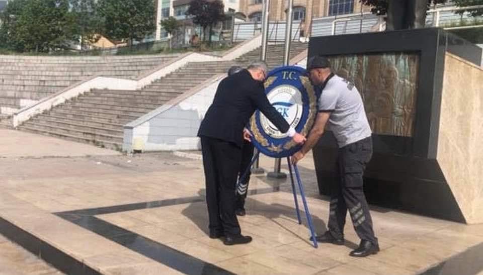 Karabük İl Müdürü İsmail Yıldırım ve kutlama heyeti, Atatürk Anıtına Çelenk Sunumunun ardından saygı duruşunda bulunup, istiklal marşı okudu.
