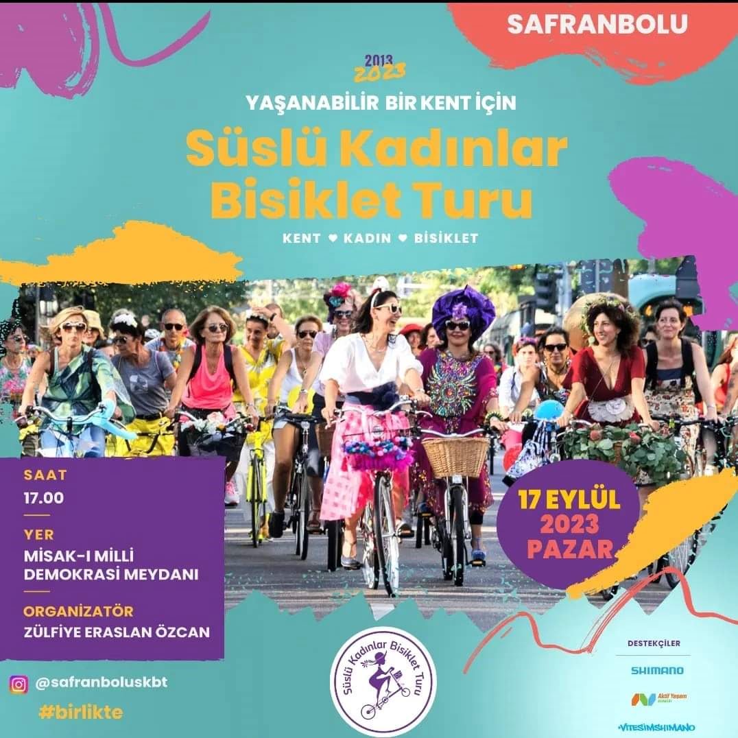 Süslü Kadınlar Bisiklet Turu, bisiklet sürmenin özgürleştirdiğini hatırlamak, şehirlerde daha fazla kadının bisikletli ulaşımı seçmesini özendirmek, dünya otomobilsiz kentler gününü kutlamak ve belediye başkanımızdan güvenli bisikletli ulaşım altyapısı istemek için bir fırsattır”