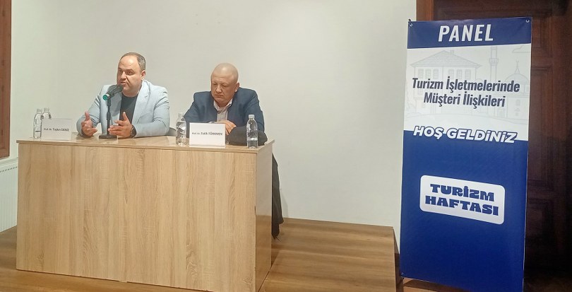 Safranbolu’da 49. Turizm Haftası kutlama programları çerçevesinde Tarihi Çarşı Muallimler Birliği Toplantı Salonunda gerçekleştirilen ‘Turizm İşletmelerinde Müşteri İlişkileri’ adlı panele Karabük Üniversitesi Turizm Fakültesi Öğretim Üyeleri Prof. Dr. Taşkın Deniz ve Prof. Dr. Fatih Türkmen konuşmacı olarak katıldı.