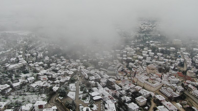 Gece saatlerinden itibaren aralıklarla devam eden kar yağışının ardından Tarihi Çarşı bölgesinde bulunan tarihi konak ve yapılar karla kaplanırken, ortaya kartpostallık görüntüler çıktı. Ziyaretçilerin hayran kaldığı kentteki kar manzaraları dron ile görüntülendi.