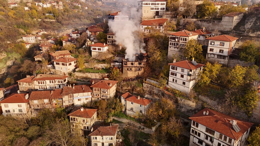 Konaktan geriye kalan harabe ise dronla havadan görüntülendi. Görüntülerde yangının konağa verdiği ağır tahribat net bir şekilde görüldü.