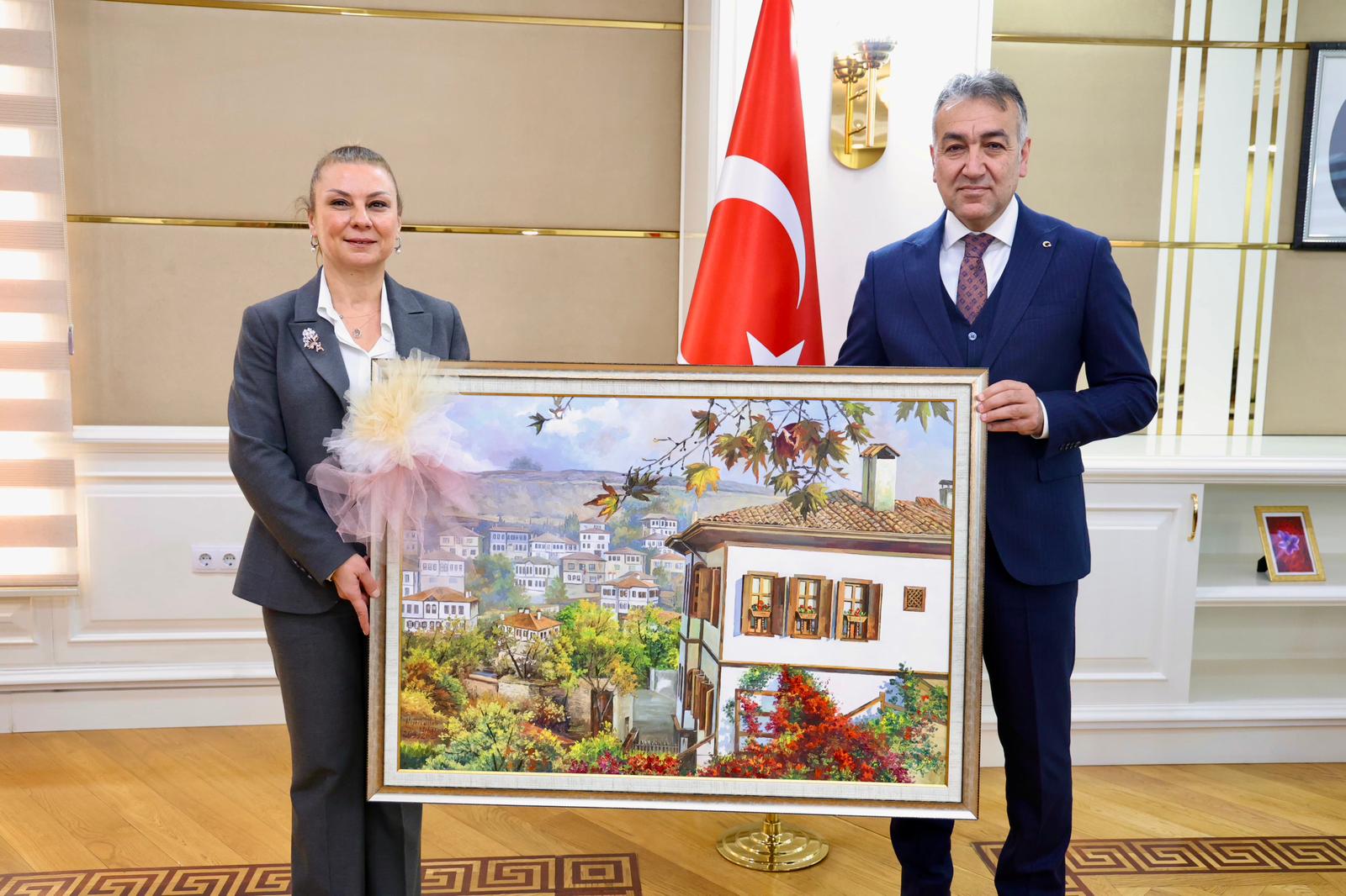 Safranbolu Belediye Başkanı Sayın Elif Köse Vali  Çağataya Safranbolu Tablosu Hediye etti