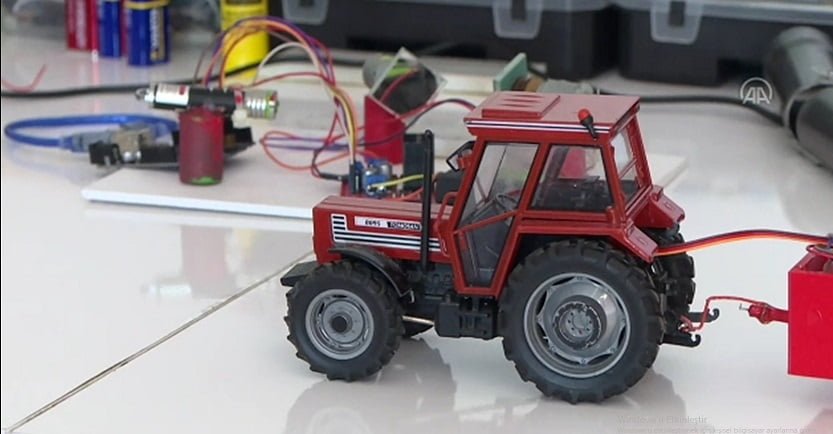 Firma temsilcilerinin kendisine hediye ettiği traktörü 20 günde uzaktan kontrol edilebilir hale getiren Şen, firmadan davet aldı.