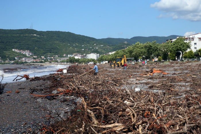 Bölgede etkili olan sağanaklarla taşan dereler, beraberinde kütük ve odun parçalarını da denize sürükledi. Odun parçaları, Cide sahilinde kıyıya vurdu.