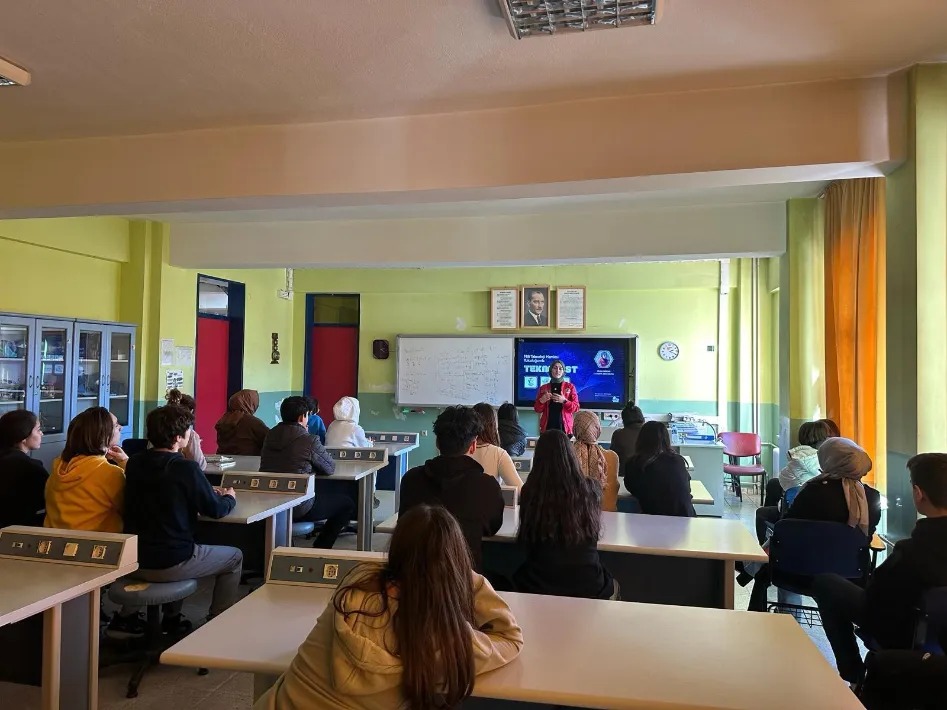 T3 Vakfı Karabük Sorumlusu Yelda Doğantarafından verilen eğitimlerde öğrencilerimize Dene Yap Atölyeleri ve Teknofest hakkında bilgilendirme yapıldı. Teknofest öğrenci eğitimlerimiz hafta içi diğer okullarımızla devam edecek.