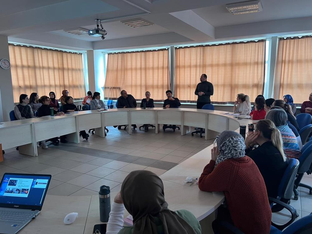 KBÜ öğretim üyeleri ve idari personelinin katılımıyla gerçekleşen toplantıda, Karabük Teknokent Genel Müdürü Doç. Dr. Tahir Güneşer ve TTO Genel Müdür Yardımcısı İbrahim Zorlu tarafından Karabük Teknokent’in sunmuş olduğu imkanlar ve sağladığı destekler ele alındı. Fakülte çalışanları, Karabük Teknokent’in faaliyetleri, AR-GE projeleri, yenilikçi girişimcilik ve iş birliği imkanları hakkında bilgilendirildi.