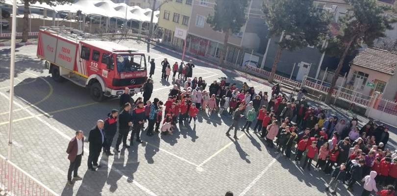 Tosya Belediye İtfaiyesi tarafından Tosya Fevzi Paşa İlkokulu’nda düzenlenen tatbikatta, ilk olarak öğrencilere deprem, yangın ve benzeri felaketlerden korunmanın yolları ile yapılması gerekenler anlatıldı.