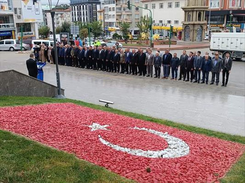 Cumhuriyet Meydanı’nda düzenlenen törende, muhtarlar tarafından Atatürk Anıtı’na çelenk sunulmasının ardından saygı duruşunda bulunuldu ve İstiklal Marşı okundu.