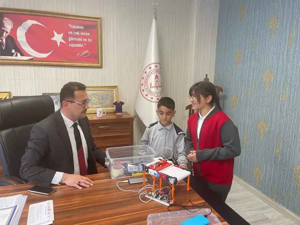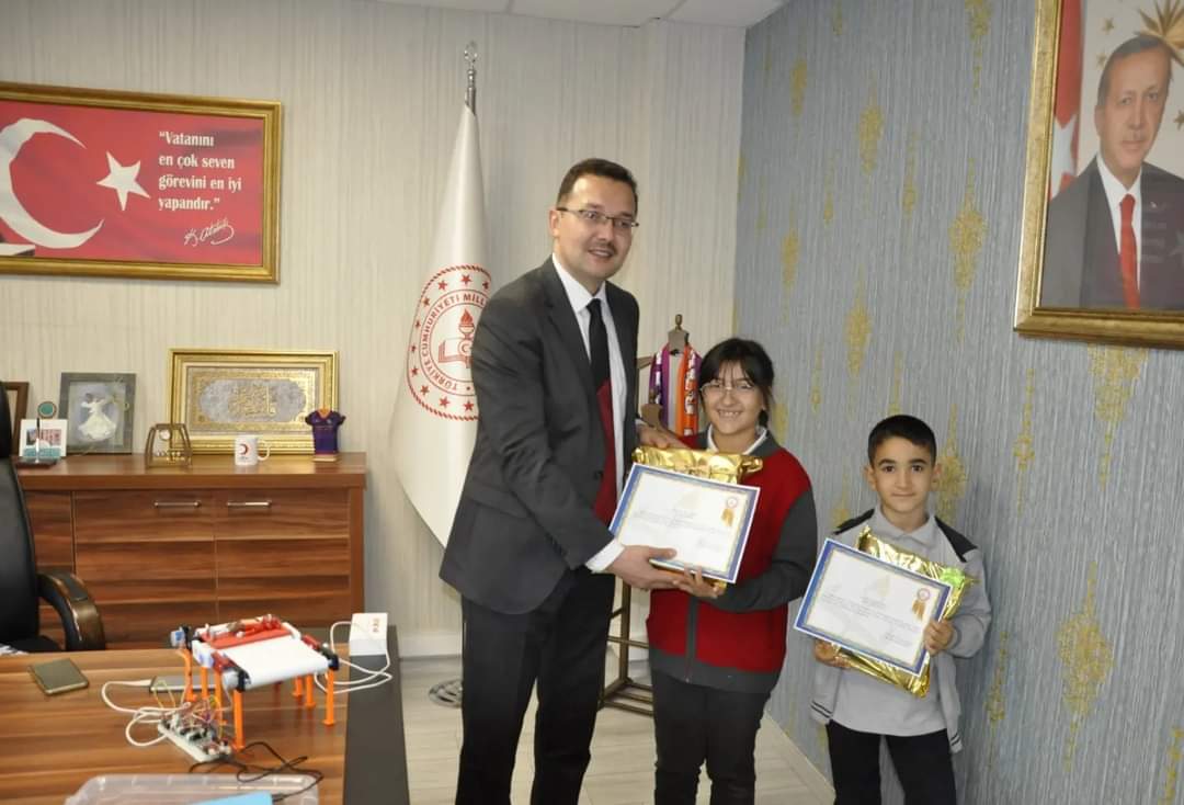 Projeyi öğretmen ve öğrencilerimizden dinleyen İlçe Milli Eğitim Müdürü, öğrencileri ve danışman öğretmenleri ilçemizin adını duyurarak büyük bir başarıya imza attıkları için tebrik etti ve başarılarının devamını diledi.