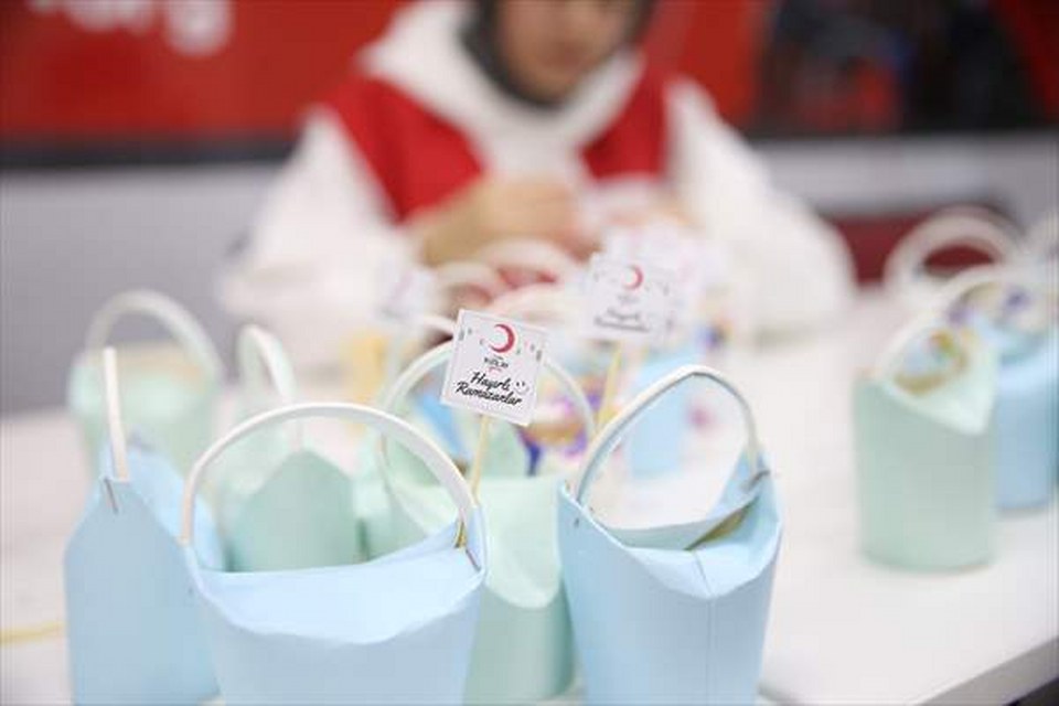 Genç Kızılay ekipleri, ramazan öncesinde Türk Kızılay Kastamonu Şubesi’nde bir araya gelerek karton bardakları küçük çanta şekline getirdi. İçerisine çocuklar için şeker ve çikolata koyan ekipler, bu paketlerden ilk etapta 200 adet hazırladı.