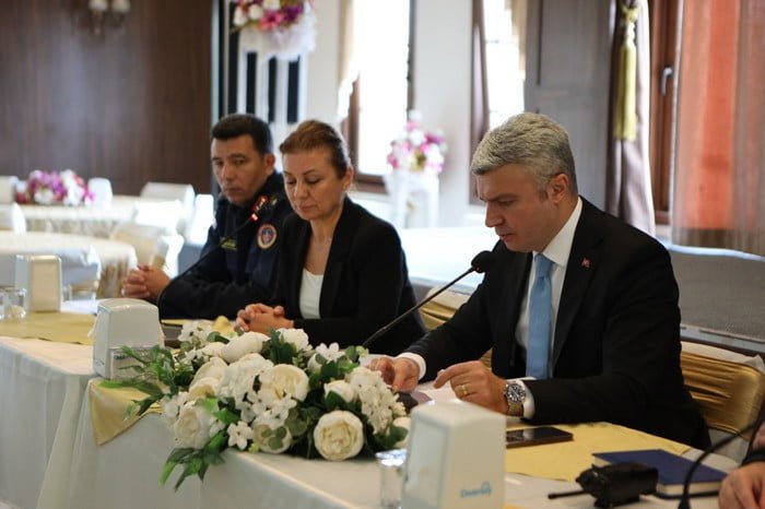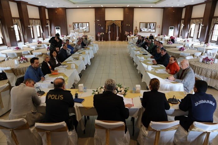 Safranbolu Kaymakamı Şaban Arda Yazıcı, Belediye Başkanı Elif Köse, İlçe Protokolü, STK’lar, Esnaf, konak ve lokum işletmecileri, Turizm Dernek Başkanları’nın katıldığı toplantıda Safranbolu Turizmine katkı sağlayacak Türk Mutfağı Haftası etkinliklerinde neler yapılabileceği istişare edildi. Sunal Tülbentçi Öğretmenevi‘nde yapılan toplantı da konuşan Kaymakam Yazıcı şunları söyledi, ”Ülkemizin önemli turizm merkezlerinden biri olan Safranbolu yerli ve yabancı turistlerin gezip görmeye geldiği çok önemli bir ilçedir. Turizm potansiyelimizin daha ileriye taşınması ve gelen misafirlerimizin buradan memnun ayrılması bizim için çok önemli, turizmin önemli bir kolu da Gastronomi Turizmi haline geldi. Bu nedenle Türk Mutfağı ve Safranbolu Mutfağı bizim için çok önemli. Düzenlenecek olan Türk Mutfağı Haftasında neler yapabiliriz, nasıl bir farkındalık oluşturabiliriz diye bir araya geldik. Sizlerin görüş ve düşüncelerini aldık. Bu düşünceler çerçevesinde güzel bir koordinasyon oluşturacağız Safranbolu’muzu turizm anlamında daha yükseklere taşıyacağız.” dedi.