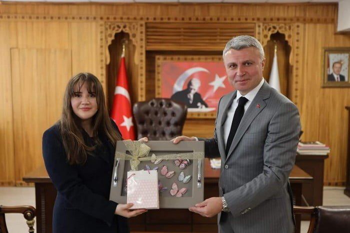 Azerbaycan, Kazakistan, Kırgızistan, Özbekistan, Türkmenistan ve Türkiye’deki Resim Sanat Okulu öğrencilerine yönelik düzenlenen “Genç Ressamların Gözüyle Türk Dünyası” konulu resim yarışmasında Türkiye 3. sü olan Safranbolu Borsa İstanbul Güzel Sanatlar Lisesi 11. sınıf öğrencimiz Elif İsra Akçay Safranbolu Kaymakamı Şaban Arda Yazıcı’yı ziyaret etti.