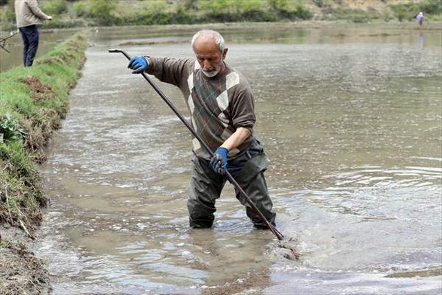Karaköy köyü muhtarı Musa Tamarslan ise köylerinde 850 dekar arazide çeltik ekildiğini dile getirerek, “Biz anadan, dededen gördüğümüz gibi çeltik ekiyoruz. Biz dünyada yokken de ekiliyormuş. Çoluk çocuk, eş hep beraber gelip akşama kadar bu işle uğraşıyoruz. Geçim kaynağımız çeltik.” dedi.