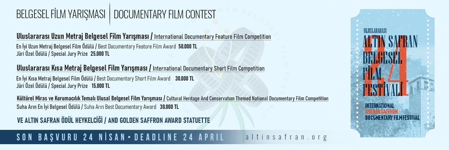 Uluslararası Altın Safran Belgesel Film Yarışması’na başvurular, 24 Nisan’da sona erecek.