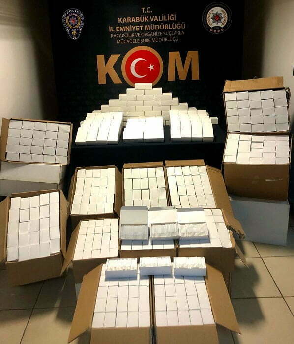 Ayrıca Karabük İl Emniyet Müdürlüğü ekipleri tarafından gerçekleştirilen kaçak tütün ve alkol operasyonlarında, 510’u tütün doldurulmuş 2 bin 911 paket kaçak makaron, 3 sanayi tipi tütün sarma makinesi, 102 kilo 5 gram sarmalık kıyılmış tütün, 18’i sahte 22 litre etil alkol, 9 şişe alkol yapımında kullanılan anason, 50 bandrolsüz parfüm ve 2 sahte plaka ele geçirdi.