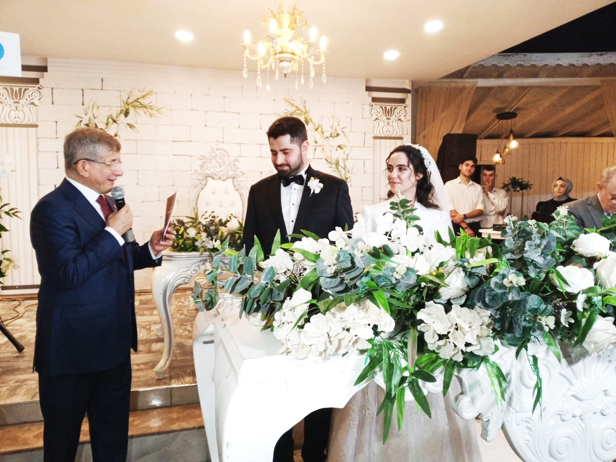 Çebioğlu Gold Residence’de Düzenlenen Dügün Törenine Çok Sayıda Seçkin Davetli katılırken ELİF ve AHMET Çiftinin nikah şahidi ise Gelecek Partisi Genel Başkanı Ahmet Davutoğlu idi