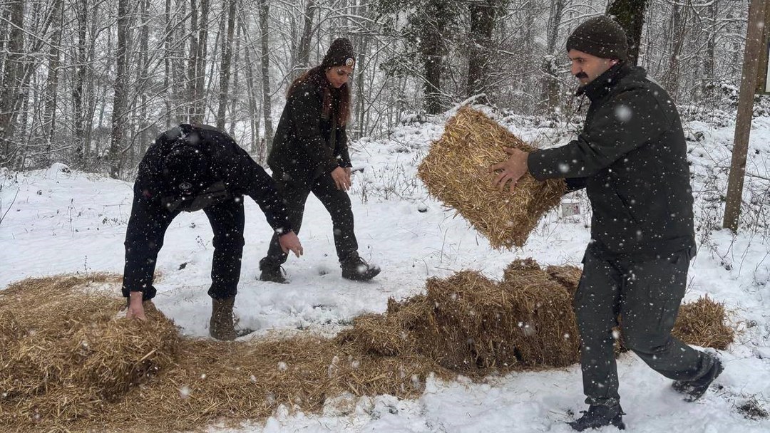 Karabük Orman İşletme Müdürlüğü ekiplerinin, özellikle karaca ve geyik gibi yaban hayvanlarının yaşamlarını sürdürebilmeleri için kendi doğal ortamlarına yem bıraktığı ifade edildi. Yapılan çalışmanın, kış aylarında yiyecek bulmakta zorlanan yaban hayvanları açısından hayati önem taşıdığı vurgulandı.
