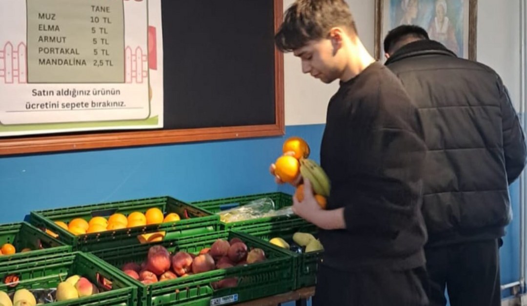 Safranbolu Atatürk Anadolu Lisesi’nde Okulun Değerler Kulübü tarafından başlatılan uygulama kapsamında okul içerisine kurulan manavda herhangi bir görevli bulunmuyor. Öğrenciler, almak istedikleri meyveleri kendileri seçerek, ücretini belirtilen sepete bırakıp alışverişlerini gerçekleştiriyor.