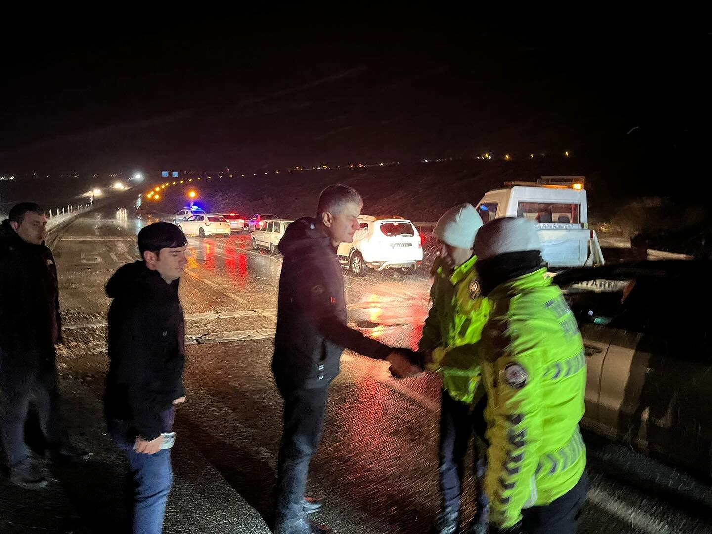 Bölgeye giden Vali Yavuz konuyla ilgili olarak yaptığı açıklamada, “Karabük-Gerede Karayolu Kemikli Rampası’nda olumsuz hava koşulları nedeniyle yaşanan ulaşım aksamalarını yerinde değerlendirdik. Karayolu ekiplerinin kar ve buzlanma ile mücadele çalışmalarını titizlikle takip ettik. Hava koşullarının etkisiyle ortaya çıkan sorunların giderilmesi için alınan tedbirleri gözlemledik. Bu süreçte gösterdikleri özverili çalışmalarından dolayı karayolu ekiplerine ve ilgili birimlere teşekkür ediyorum. Vatandaşlarımızın güvenliği ve ulaşımın sağlıklı devam etmesi için çalışmalarımız aralıksız devam ediyor. Lütfen yola çıkmadan önce tedbirli olalım.” dedi.