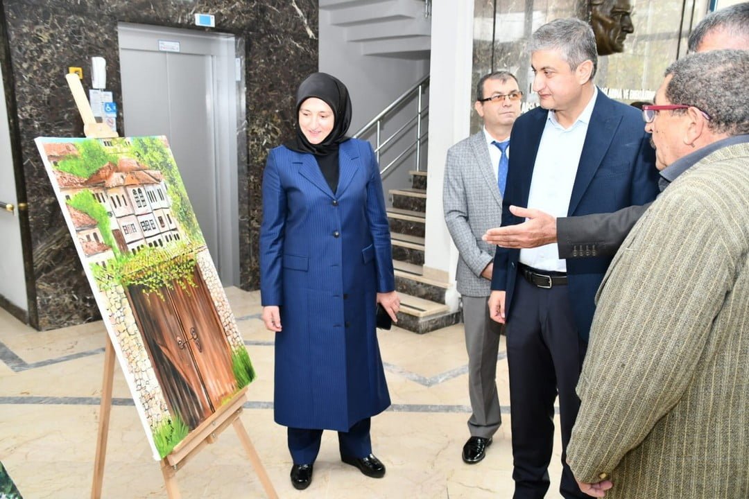 Huzurevinde kalanlarla sohbet eden Yavuz, Hasan Kurt ve Nurhan Akdokul tarafından yapılan resimlerden oluşan sergiyi gezdi.