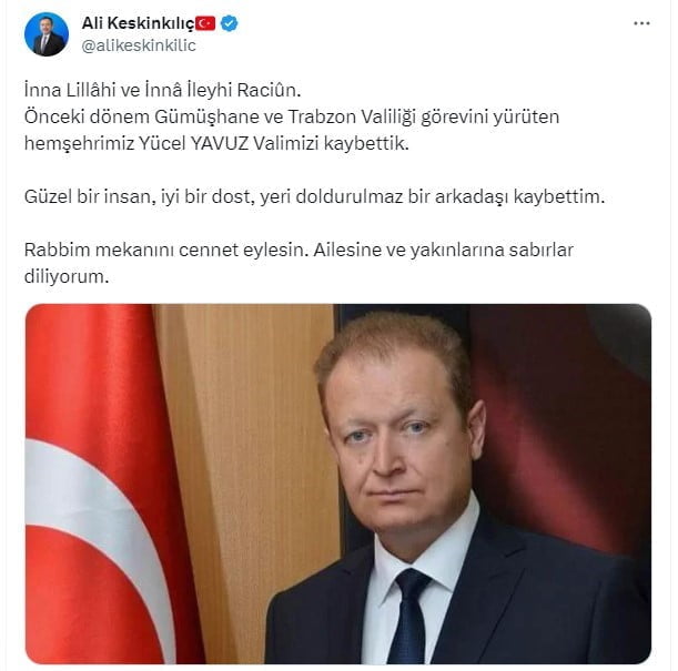 Değerli devlet adamı, pek çok mülki idare amirinin meslek büyüğü, güzel insan, hemşehrimiz Vali Yücel Yavuz’a Yüce Allah’tan rahmet, kederli ailesine, dostlarına, sevenlerine ve mülki idare amirleri camiasına başsağlığı dileriz.