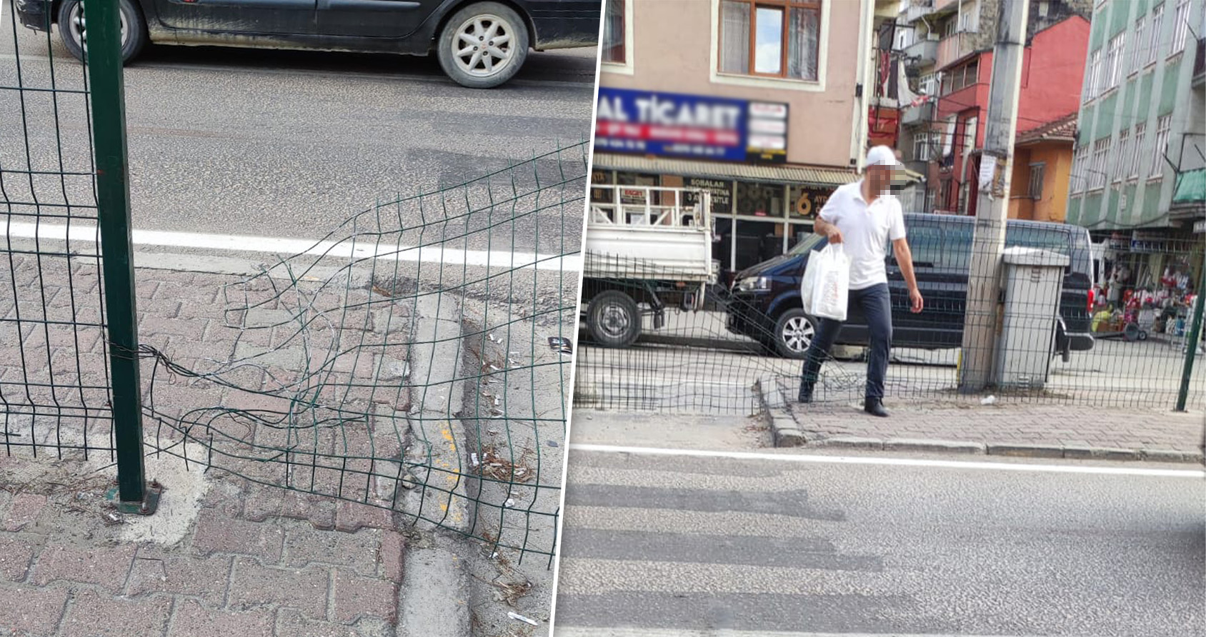 Karabük’te Tüccarlar İş Merkezi önündeki eski yaya yolu, trafik akışını düzenlemek ve yayaların güvenliğini artırmak amacıyla iptal edilmişti. Ancak, demir çitlerle kapatılan bu yaya yolunda vatandaşlar eski alışkanlıklarını bırakmamakta ısrarlı. Hemen Yakındaki Yaya geçidi ve üst geçidi kullanmak yerine, iptal edilen bu yaya yoluna yönelen bazı vatandaşlar, demir çitleri devirmekte ve bu alan üzerinden geçmeye çalışmakta.